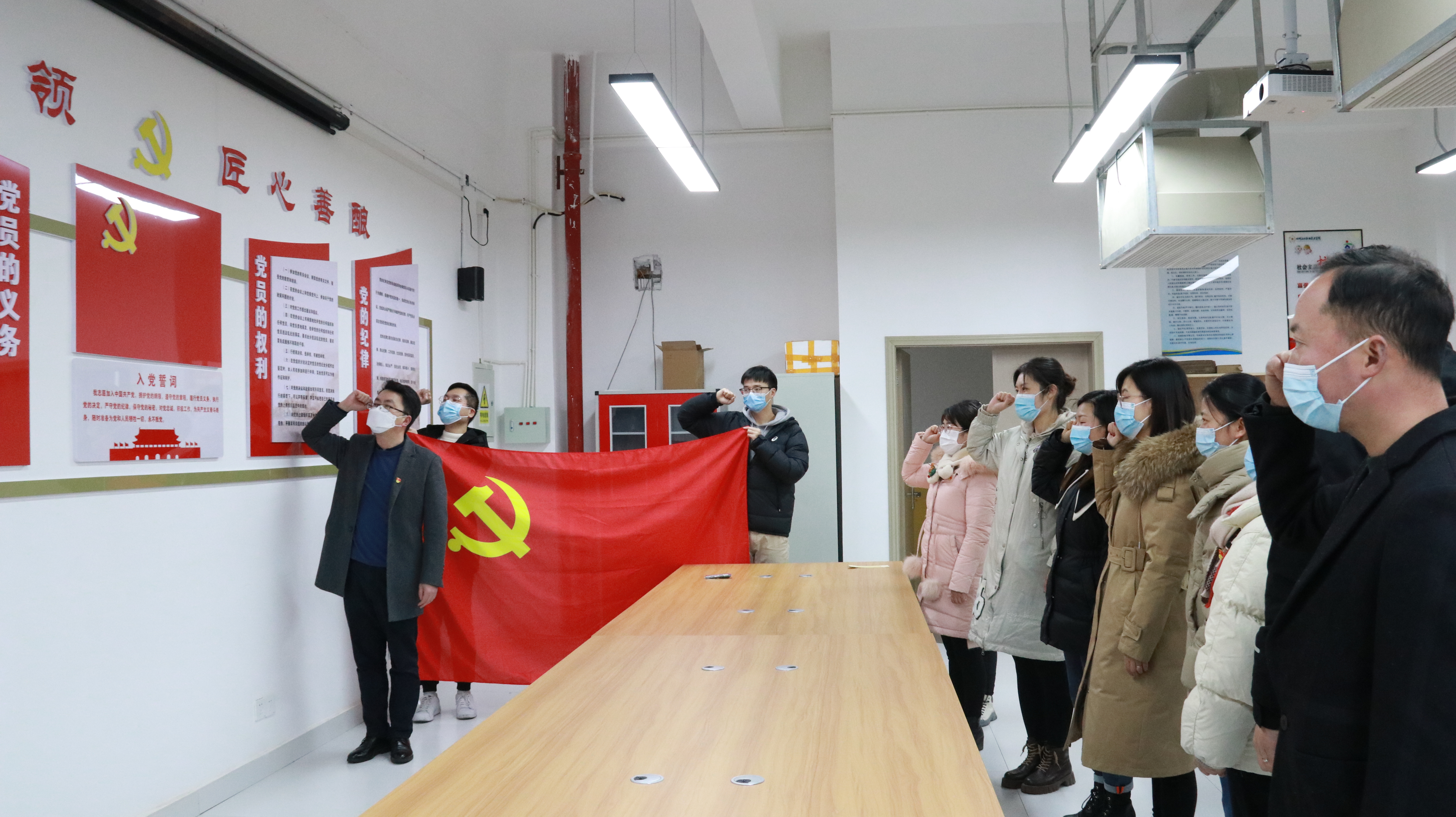 全体党员在党支部书记的带领下面向党旗庄严宣誓,在党旗下接受心灵的净化和洗礼,心中时刻牢记党员的政治责任和历史使命。短短的十二句话,却镌刻着中国共产党人百年来的初心和使命,字字千钧、掷地有声。