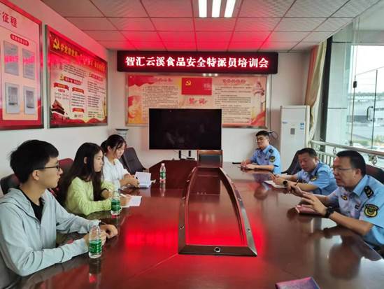 纳溪区市场监督管理局食品安全总监牟强、餐饮股副股长穆雪峰、流通股、食安办等相关人员对两位同学进行了培训,培训内容主要从全面落实食品安全“两个责任”方面进行。