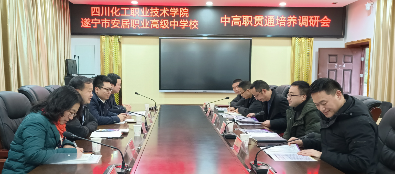 随后,调研组一行分别到遂宁应用高级技工学校和遂宁市安居职业高级中学校考察交流,两校主要负责人均表示学校之间近年来建立了良好的合作基础,在“3+3、3+2”等中高职衔接培养工作方面取得了不错的成效,未来将与化职院深入推进中高职协同育人,共同促进职业教育发展和质量提升。