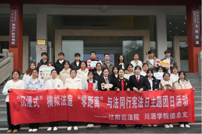 为大力弘扬宪法精神,维护宪法权威,在第十一个“国家宪法日”来临之际,学院联合江阳法院开展“‘沉浸式’模拟法庭 ‘零距离’与法同行”宪法日主题团日活动。