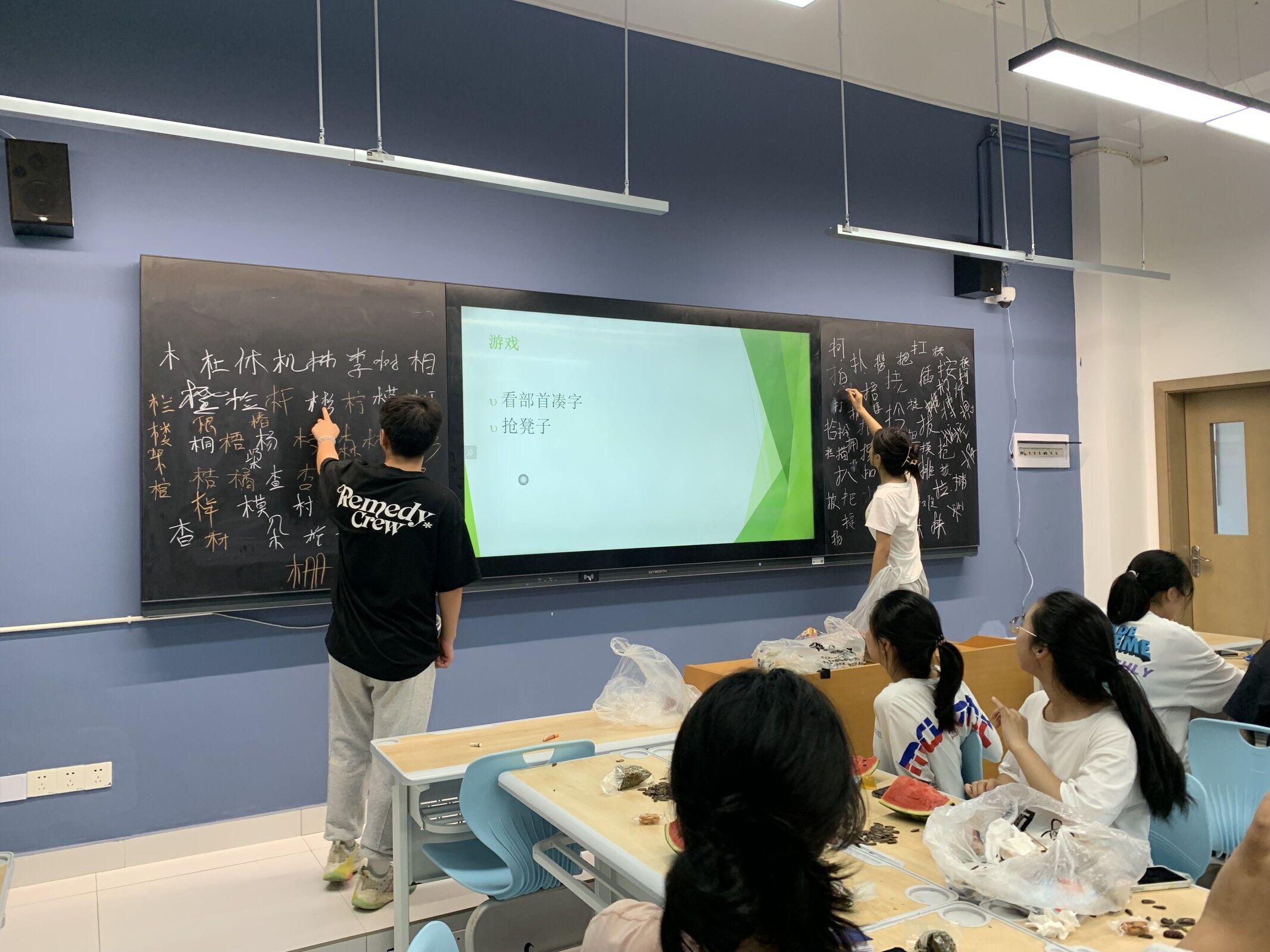 活动开始前,生活委员为班级采购了一批香甜的粽子和水果。各班委提前到教室布置场地,为活动的有序开展做好了充分准备。活动一共分为三个部分:第一部分,主持人介绍关于端午节的来历以及风俗等相关知识;第二部分讲解有关爱国诗人屈原的故事和诗歌,并表演朗诵《哭屈原》,从而激发了同学们对屈原的崇敬之情和强烈的爱国之情;第三部分是同学们进行部首凑字比赛活动,在凑字活动中他们找到了汉字的乐趣,体会到了中国文化的魅力;第四部分合唱《岁月神偷》和《夜空中最亮的星》,班级活跃氛围达到了顶峰。