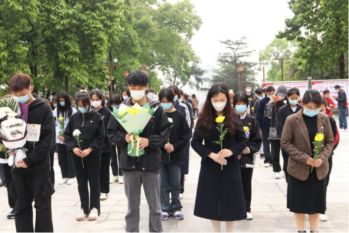 2022年4月5日上午11点,川酒学院团总支书记刘楠乔、学生科长王家艳老师带队,各班团支部书记、团员代表参加祭扫活动。