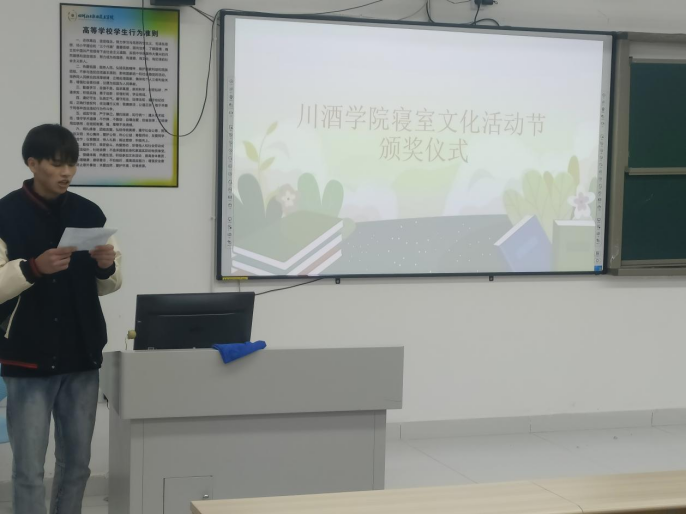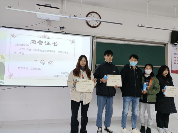 12月29日下午,川酒学院在勤学楼11A205教室举办了首届寝室文化活动节颁奖仪式,为活动中表现优异的寝室颁奖。