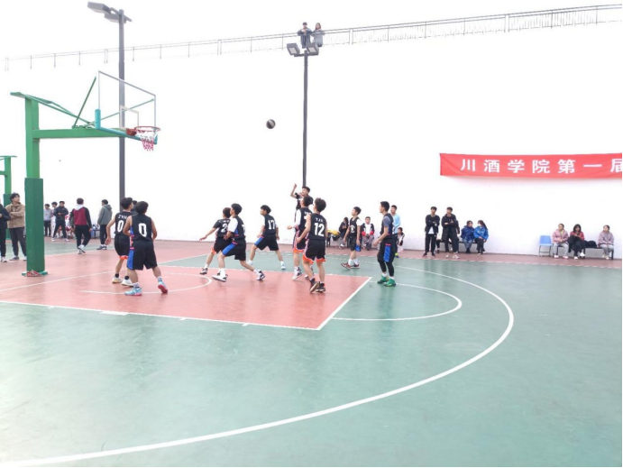 2021年12月1日下午1点半,由共青团川酒学院团总支委员会组织的川酒学院第一届“川酒杯”篮球比赛预赛第二场在学校篮球场正式开始。