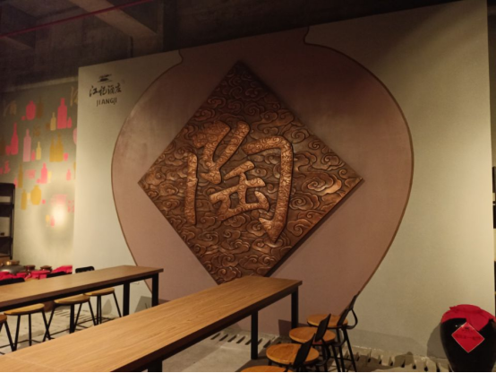 工作人员带领我们一起去看江记酒庄基地的大局分布图,包括江小白高粱产业园、酿造基地、江小白高粱博物馆等。“江记酒庄”是集高粱种植、工艺研发、酿造、贮藏、物流和销售为一体、连接上下游产业配套的高粱酒全产业链企业。