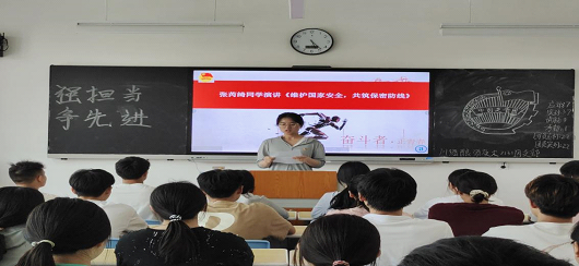 时时检饬,谨言慎行,守口要密,防意须严。为切实提高团员们的保密意识,川酒学院各个团支部通过组织同学观看保密公益宣传片、微视频及海报等方式,带领同学们深入了解保密工作的重要性。食品检验检测技术2132班团支部通过讲解渝中区国家保密局唐泽芳同志的先进事例,让大家从保密故事中感悟党的保密机要工作优良传统,理解新时代保密机要工作的职责使命,更好地树立起维护党和国家秘密的思想自觉和行动自觉。食品检验检测技术2232班团支部通过户外开展“保密填字”游戏,充分调动成员学习的积极性和主动性。引导提升了对“紧绷保密之弦,共筑安全之盾”主题的理解。酿酒技术2131班团支部的张芮绮同学以主题《维护国家安全,共筑保密防线》为题进行演讲,并号召成员们要学习李大钊始终严守党的秘密、保护其他同志,未吐露一丝一毫的保密精神。