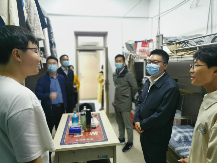 谢光杰副院长一行走进新生宿舍,与同学们进行了亲切的交流。详细询问同学们的入住情况和到校感受,“同学是从哪里来的?”“还有什么困难?”并对充满朝气的芊芊学子表示由衷的欢迎。并细心叮嘱同学们要注意宿舍用电安全,避免发生用电起火等情况;要做好宿舍消杀工作,定期通风,做好个人防护,并鼓励同学们快速融入集体,建立和谐融洽的人际关系,有困难向辅导员及时反映。激励同学们要抓住发展际遇,做好人生规划,学好专业知识,提升自身价值。