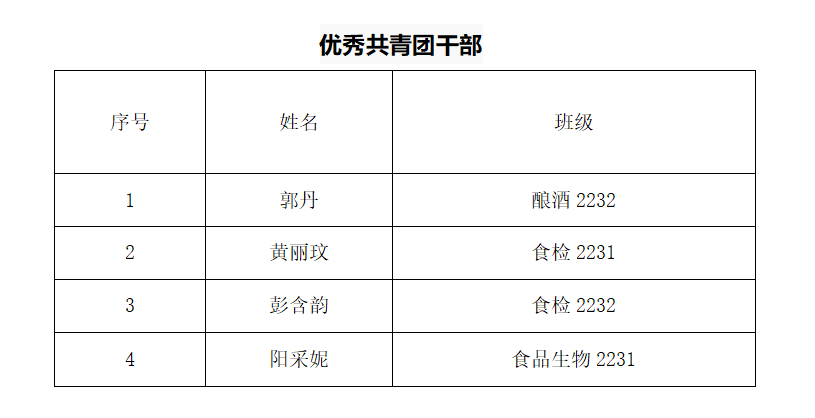 根据《四川化工职业技术学院学生手册》及《共青团四川化工职业技术学院委员会关于申报评选2023年度四川化工职业技术学院优秀共青团员、优秀共青团干部、优秀志愿者、优秀团支部、标准化团支部、青年大学习学习标兵、先进集体、优秀学生干部、大学生自强之星的通知》的相关文件,经个人申请、班级审核、学院审核等环节,现将川酒学院2023-2024优秀共青团员、优秀共青团干部、优秀志愿者、优秀团支部、标准化团支部、青年大学习学习标兵、先进集体、优秀学生干部、大学生自强之星拟推荐至校团委的名单予以公示。公示期:2024年4月11日——2024年4月13日。