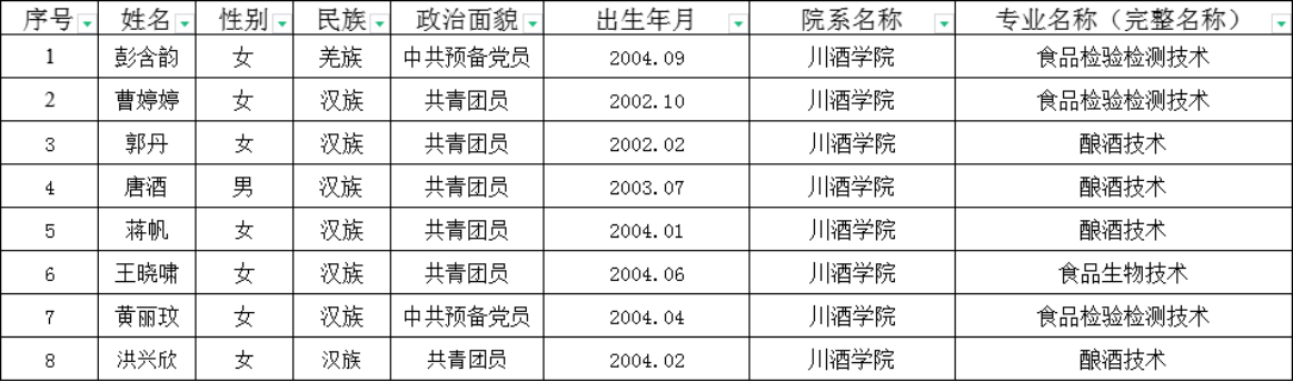 四川化工职业技术学院2025届优秀毕业生推荐名单