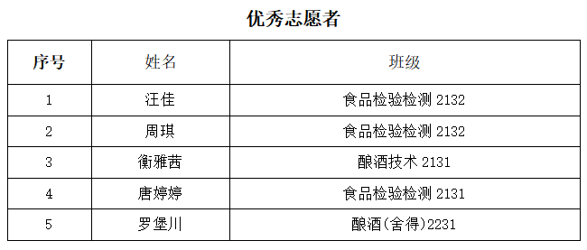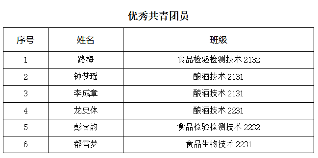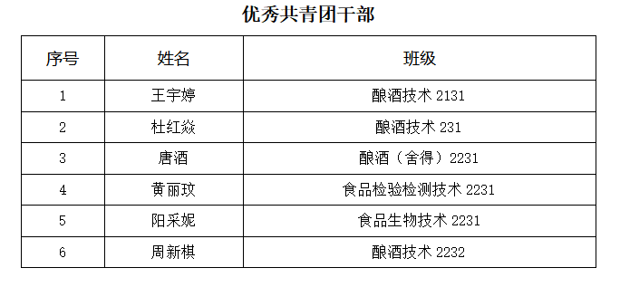 根据《四川化工职业技术学院学生手册》及《共青团四川化工职业技术学院委员会关于申报评选2022年度四川化工职业技术学院优秀共青团员、优秀共青团干部、优秀志愿者、优秀团支部、标准化团支部、青年大学习学习标兵、先进集体的通知》的相关文件,经个人申请、班级审核、学院审核等环节,现将川酒学院2022-2023优秀共青团员、优秀共青团干部、优秀志愿者、优秀团支部、标准化团支部、青年大学习学习标兵、先进集体名单予以公示。公示期:2023年4月18日——2023年4月20日。